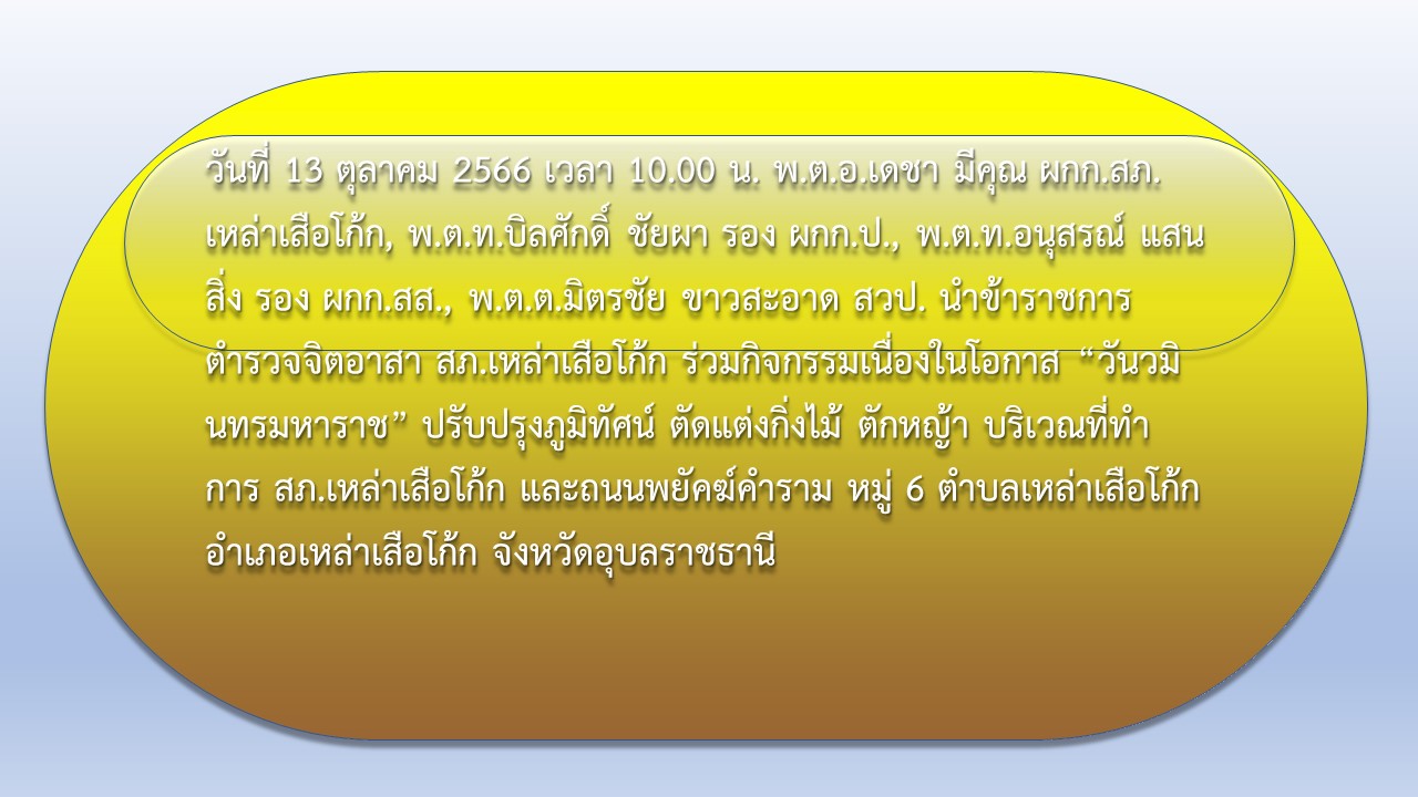 ข่าวฝากประชาสัมพันธ์ 02 15 กันยายน 2565 โดย admlaosueakok / ข่าวประชาสัมพันธ์,ข่าวฝากประชาสัมพันธ์ วันที่ 13 ต.ค.66 เวลา 10.00 น. พ.ต.อ.เดชา มีคุณ ผกก.สภ.เหล่าเสือโก้ก พร้อมข้าราชการตำรวจจิตอาสา สภ.เหล่าเสือโก้ก ร่วมกิจกรรมจิตอาสาพัฒนาสิ่งสาธารณประโยชน์ เนื่องในวันนวมินทรมหาราช Facebook iconFacebookTwitter iconTwitterLINE iconLine