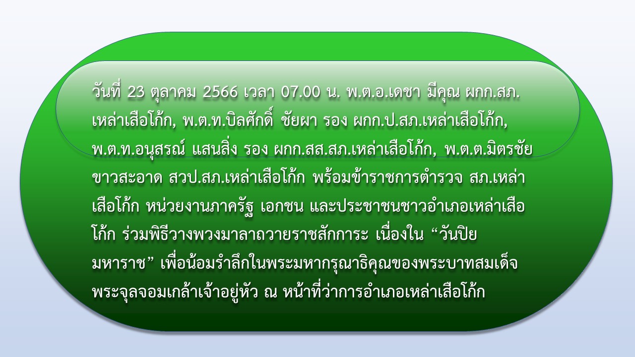 ข่าวภารกิจผู้บังคับบัญชา 02 15 กันยายน 2565 โดย admlaosueakok / ข่าวภารกิจผู้บังคับบัญชา วันที่ 23 ตุลาคม 2566 เวลา 07.00 น. พ.ต.อ.เดชา มีคุณ ผกก.สภ.เหล่าเสือโก้ก ร่วมกิจกรรมเนื่องในวันปิยมหาราช Facebook iconFacebookTwitter iconTwitterLINE iconLine