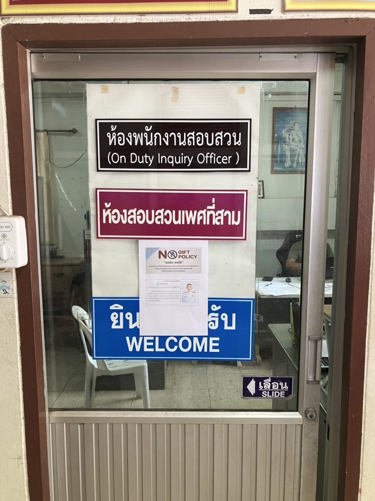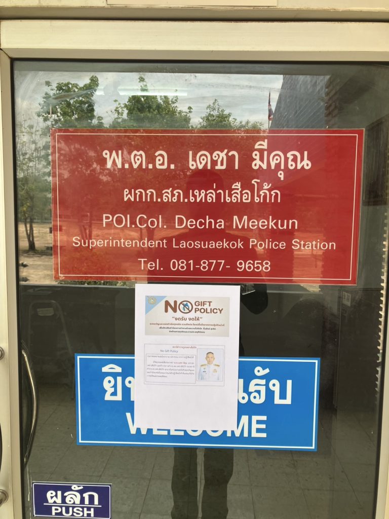 O18-ประกาศสถานีตำรวจภูธรเหล่าเสือโก้ก-ภาษาอังกฤษ