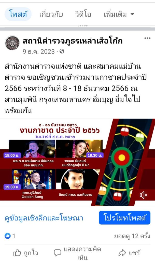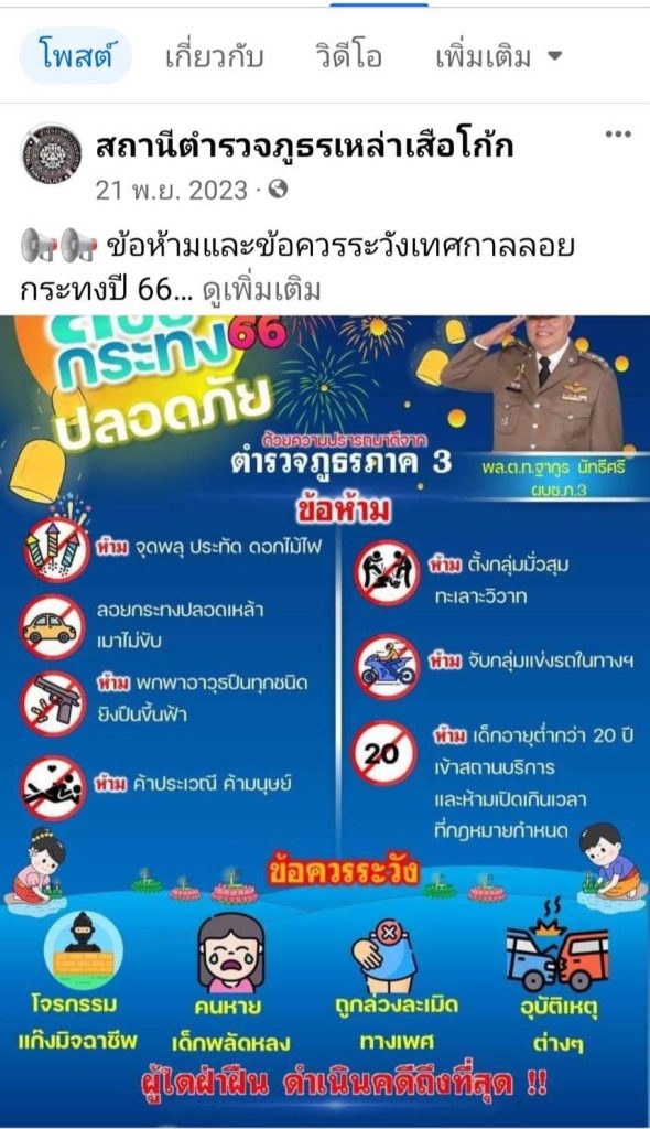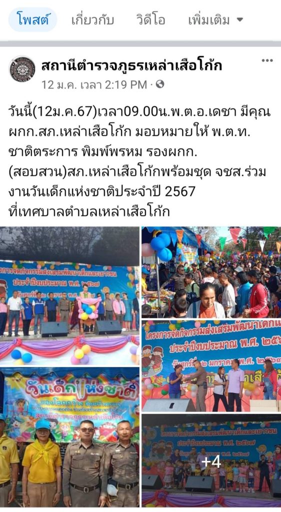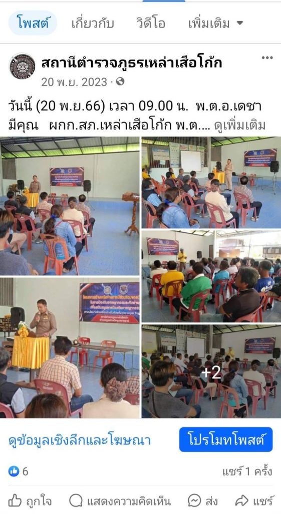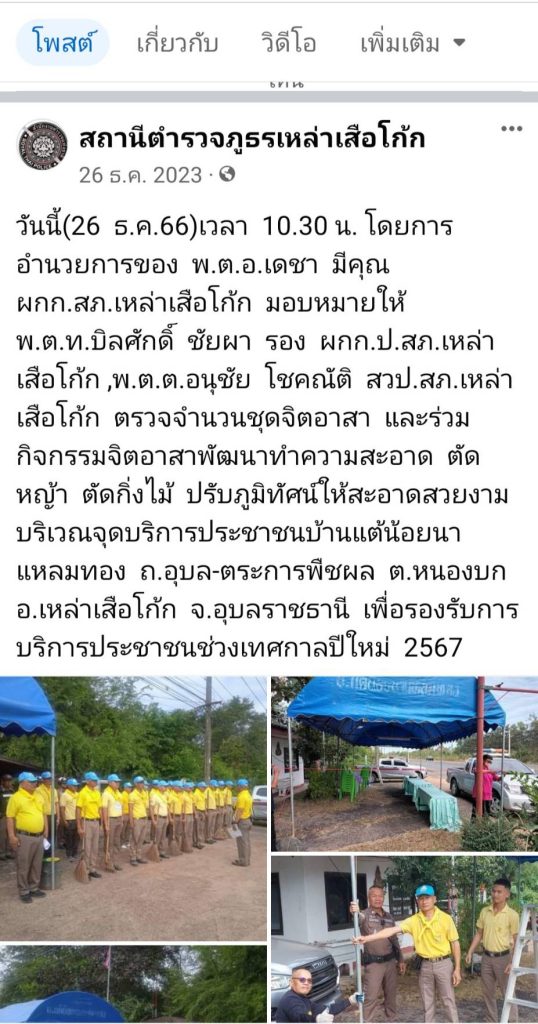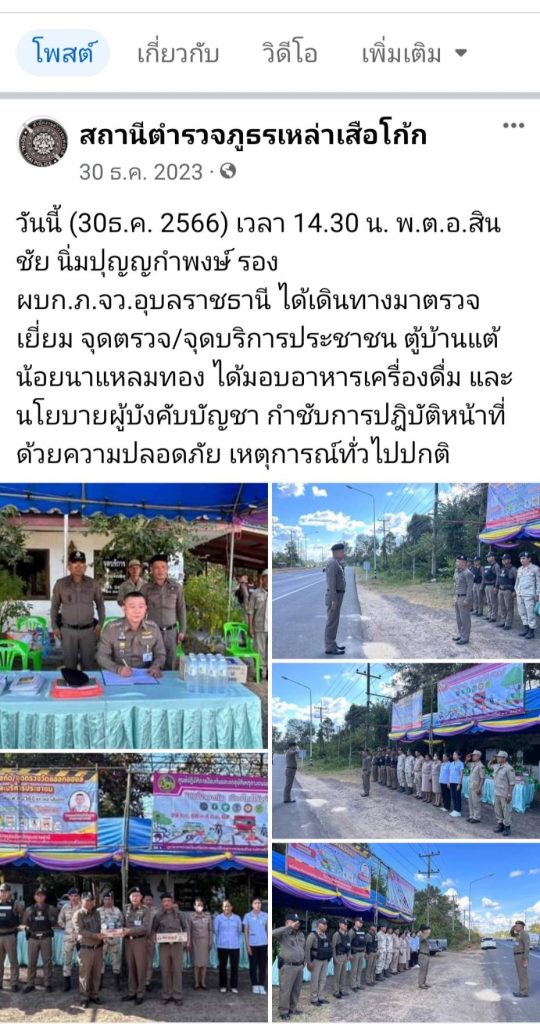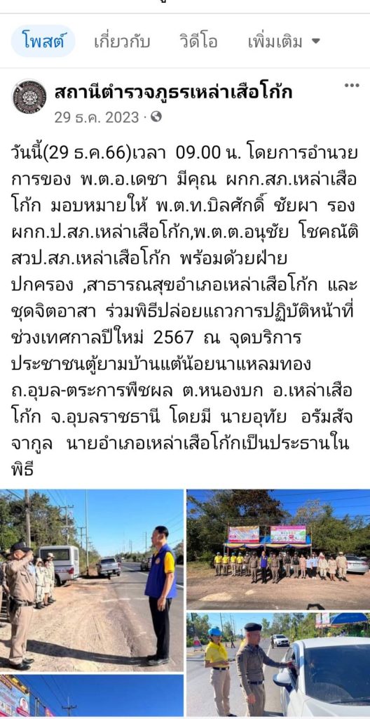การประชาสัมพันธ์ทาง Facebook ประจำเดือน กุมภาพันธ์ 2567 สถานีตำรวจภูธรเหล่าเสือโก้ก