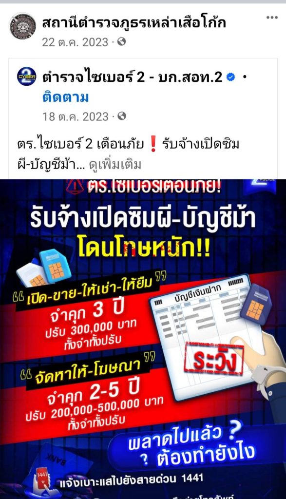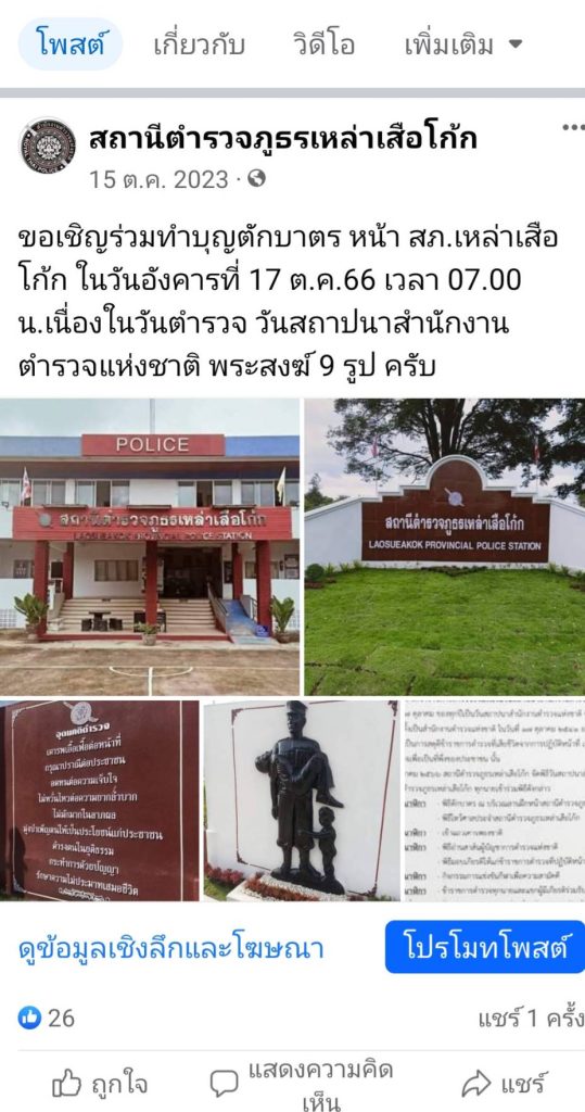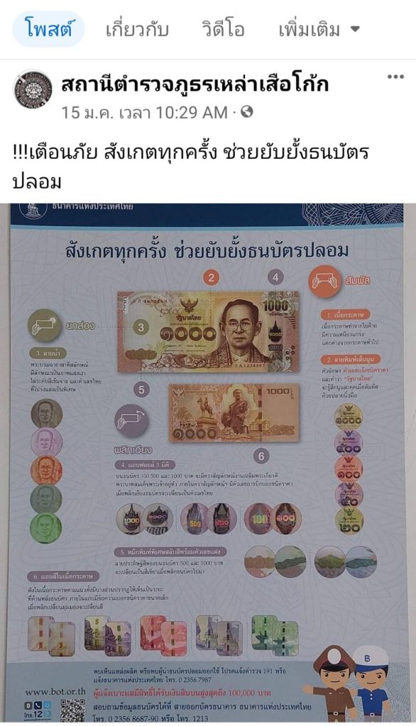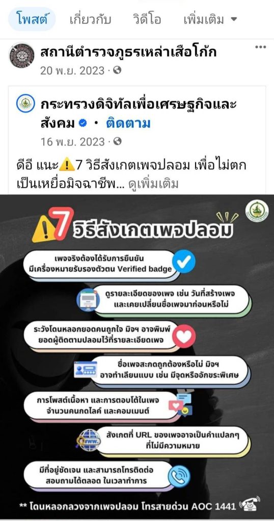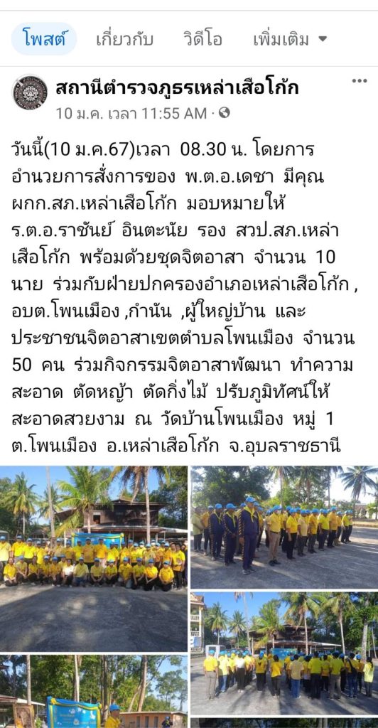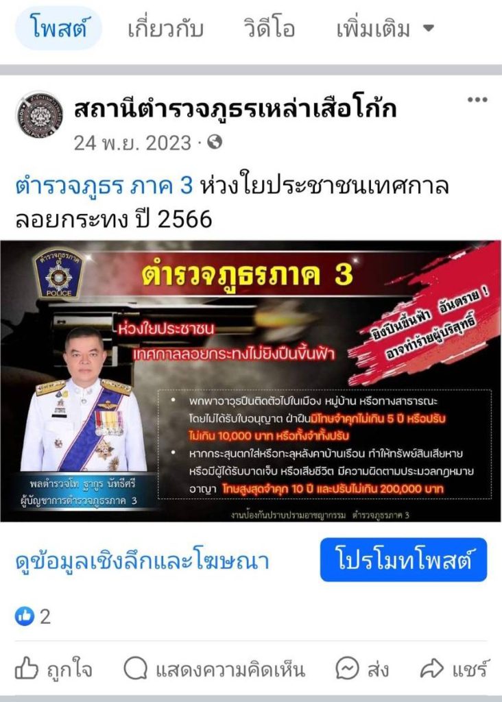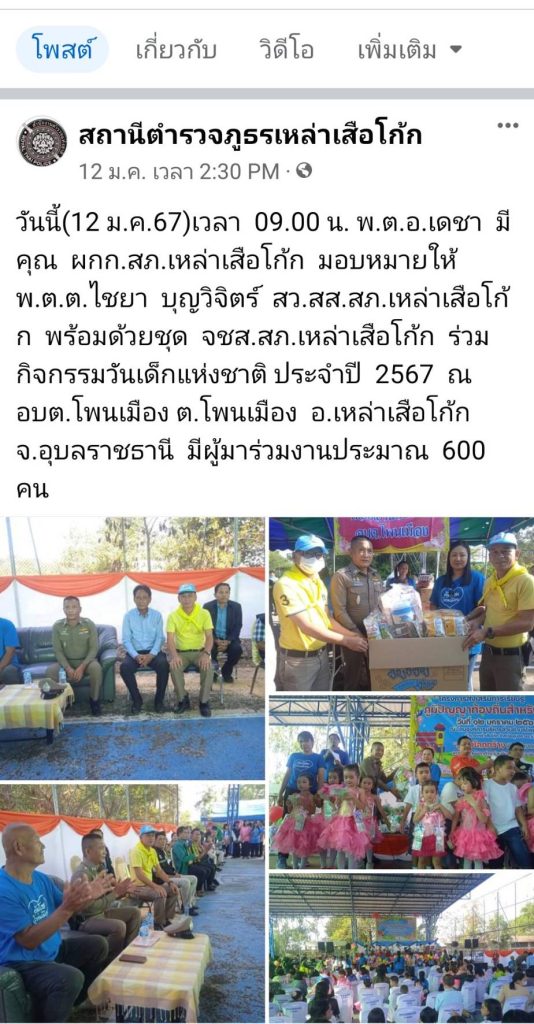 การประชาสัมพันธ์ทาง Facebook ประจำเดือน กุมภาพันธ์ 2567 สถานีตำรวจภูธรเหล่าเสือโก้ก