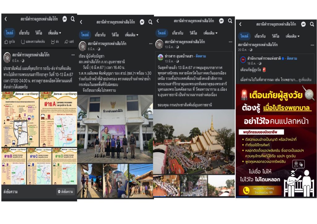 การประชาสัมพันธ์ทาง Facebook ประจำเดือน มีนาคม 2567 สถานีตำรวจภูธรเหล่าเสือโก้ก